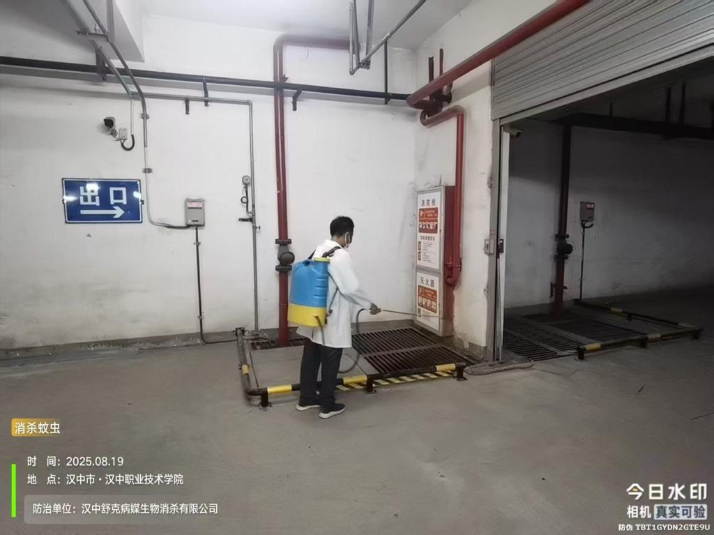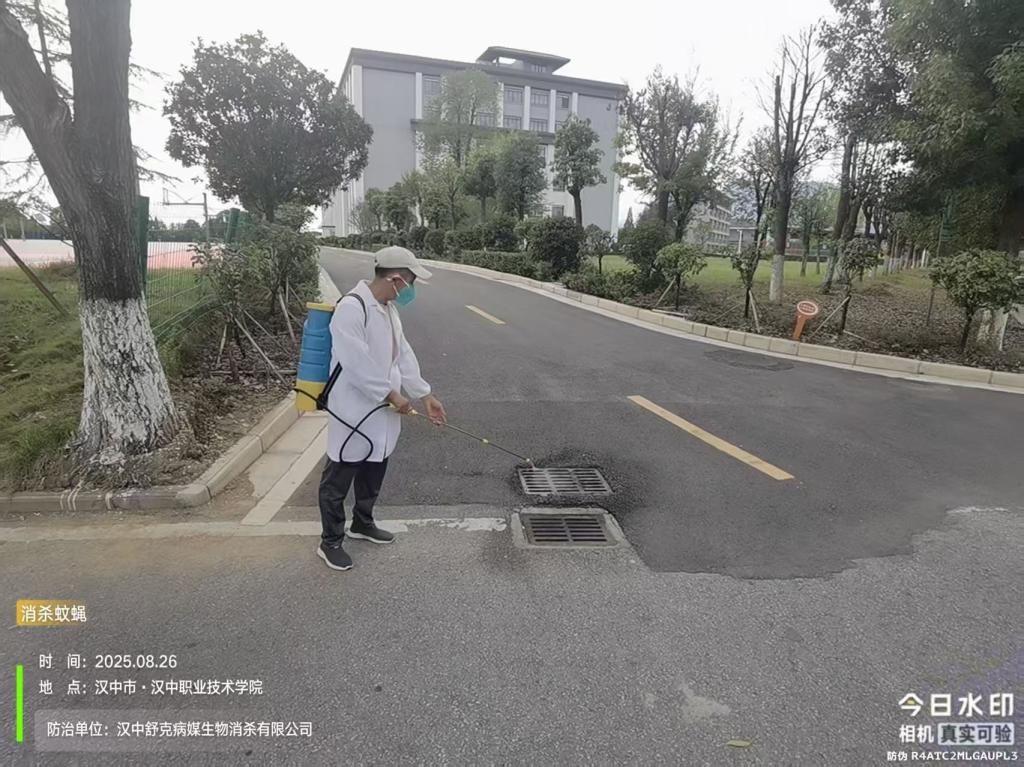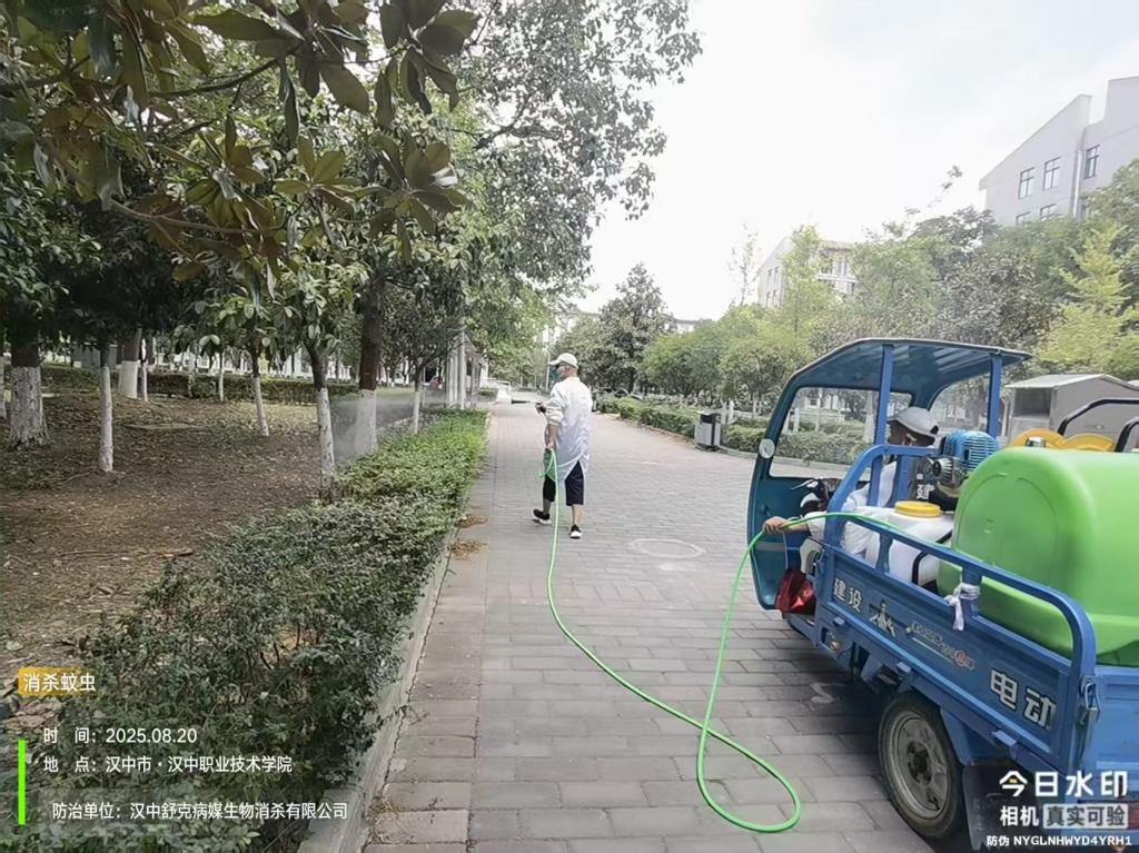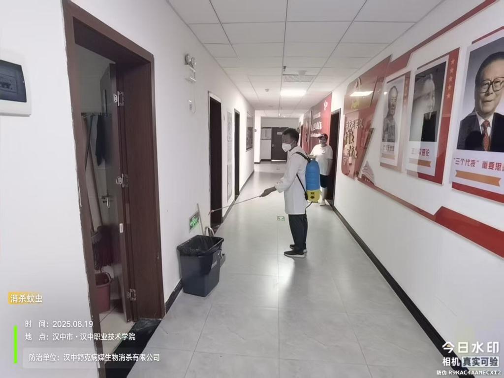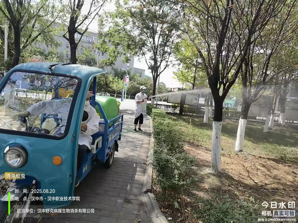 8月19日-8月20日为防范基孔肯雅热疫情的发生,后勤处组织人员在开学前对全院所属范围实施第一次传染源(蚊虫)整体灭杀。此次灭杀力求全覆盖无死角,为减少喷洒药剂对人员的伤害,喷洒时间放在蚊虫最活跃的晚5点半到7点半之间进行,最大限度的达到灭杀效果。