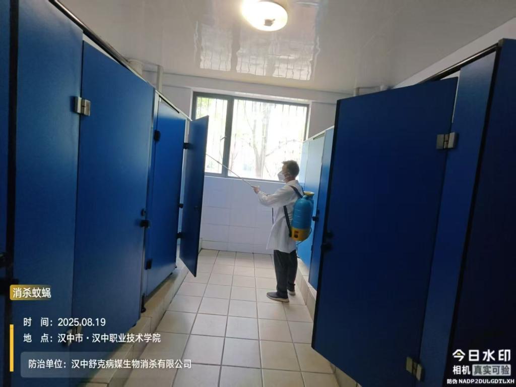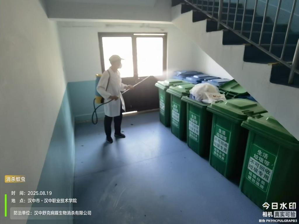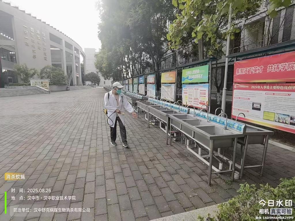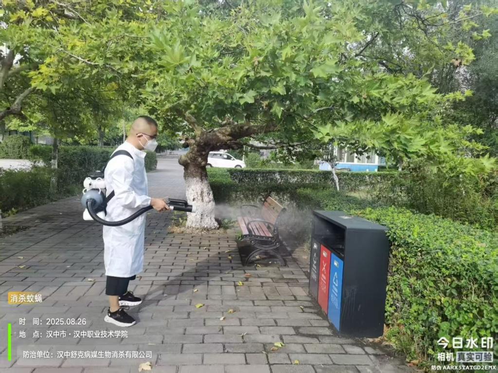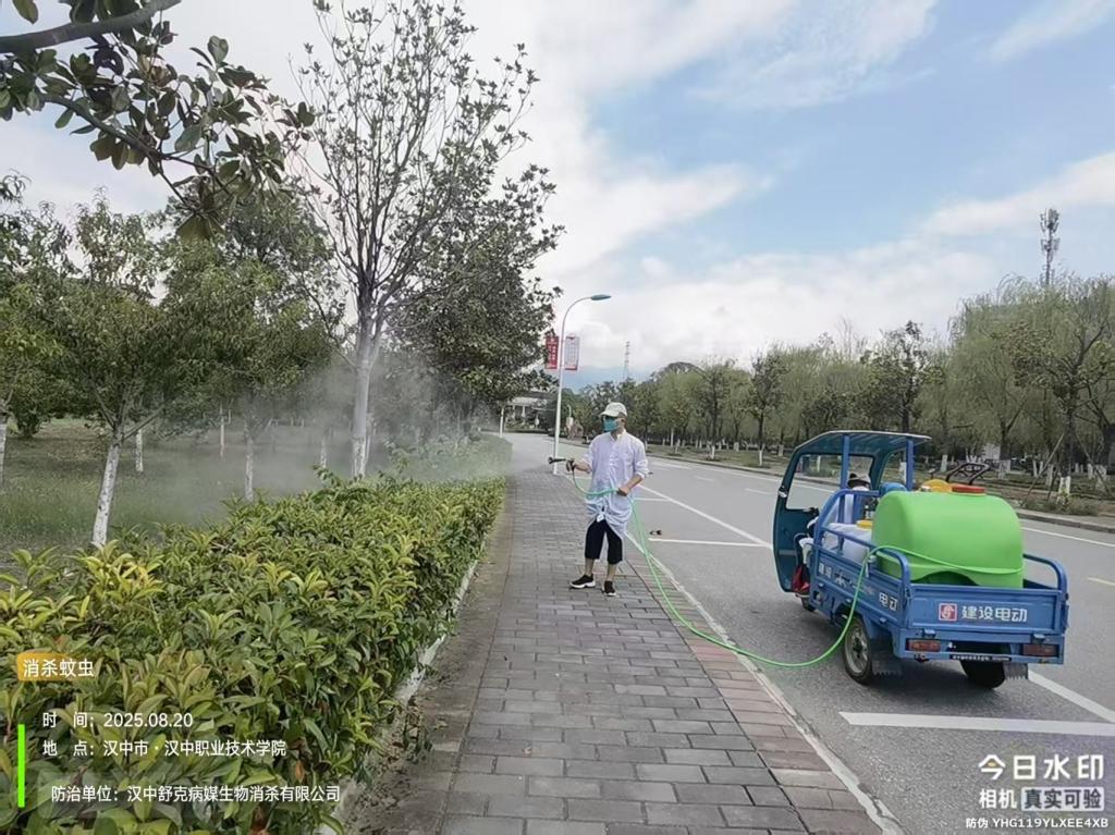 8月19日-8月20日为防范基孔肯雅热疫情的发生,后勤处组织人员在开学前对全院所属范围实施第一次传染源(蚊虫)整体灭杀。此次灭杀力求全覆盖无死角,为减少喷洒药剂对人员的伤害,喷洒时间放在蚊虫最活跃的晚5点半到7点半之间进行,最大限度的达到灭杀效果。