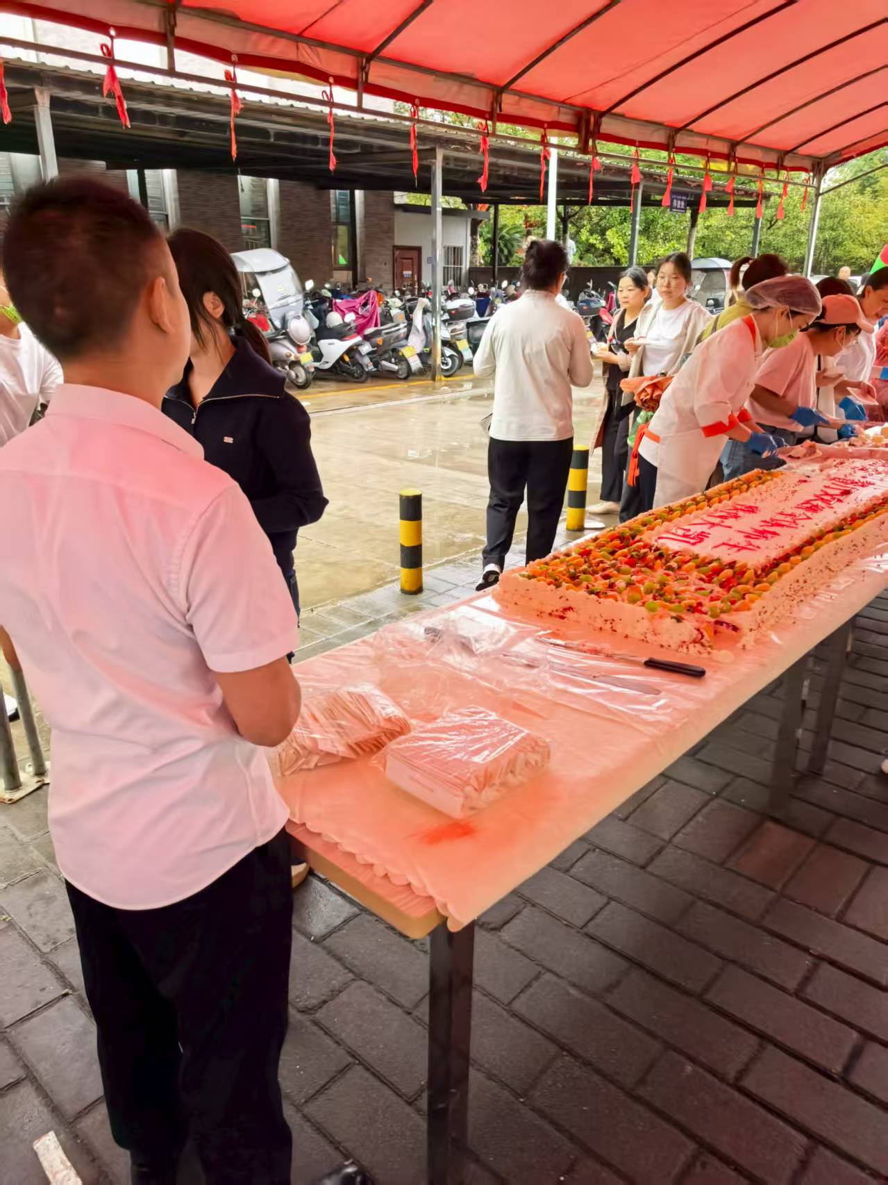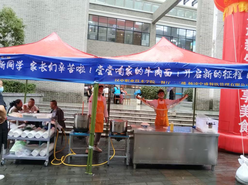 秋雨淅沥迎萌新,校园暖意胜春朝。9月开学季,汉中职业技术学院后勤处饮食服务中心以一场充满烟火气的暖心活动,为初入校园的新生及家长驱散雨日寒意——现场制作巨型蛋糕、现煮牛肉拉面、新鲜糕点,联动各餐饮商户推出免费赠饮、牛奶派发与特色试吃,用美食与热忱为新生开启校园生活的美好序章。