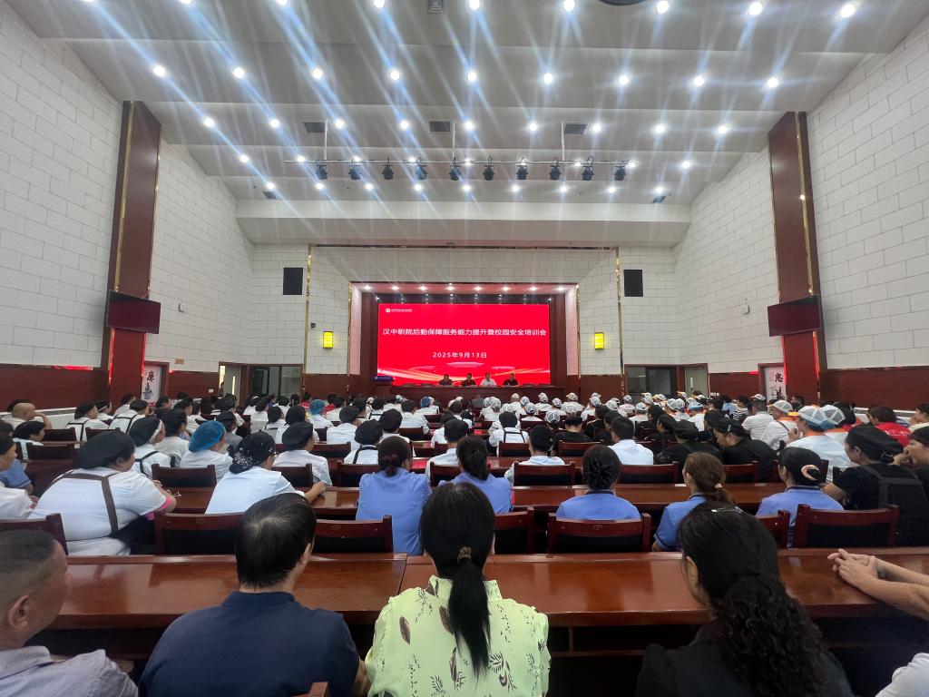 为进一步强化校园后勤保障水平,筑牢校园安全防线,9月13日下午,汉中职业技术学院组织召开后勤保障服务能力提升暨校园安全培训会。保卫处负责人、后勤处副科以上全体人员,以及餐饮、校园超市、保洁、物业、快递超市、空调运营、洗浴运营、直饮水公司等全体后勤服务从业人员参会,共同聚焦后勤服务提质与校园安全守护。会议由后勤处副处长刘俊延主持。