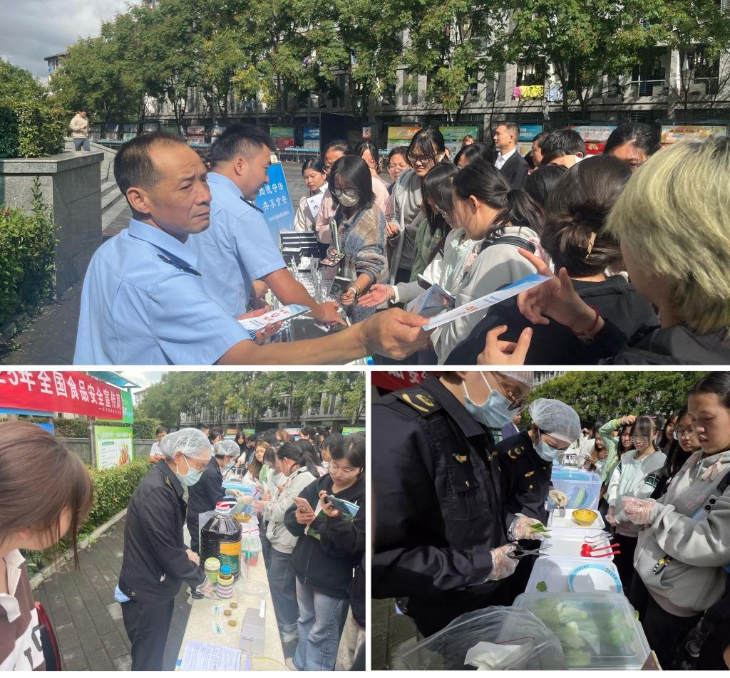 联合宣传“强意识”,专业科普进校园。学院主动联动汉台区市场监管局,共同开展“食品抽检+科普宣传”进校园专项活动,将专业监管服务与科学知识直接送到师生身边。活动现场,监管人员与技术人员以“手机变法码”实操演示为核心,手把手教师生通过扫码查询食品溯源信息、发起投诉举报,让便捷高效的“指尖维权”融入师生日常;同时结合真实案例,深入浅出讲解“熟食室温存放不超过2小时”的微生物防控原理,分享“荤素搭配、粗细结合”的膳食营养搭配口诀,精准打破师生在食品安全认知上的误区。现场还发放《校园食品安全手册》《饮食健康指南》等资料400余份,将专业食安知识转化为师生易懂、能用的“生活宝典”。
