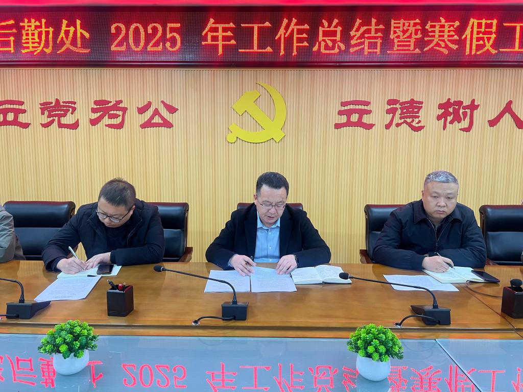 1月23日,汉中职业技术学院后勤处召开工作会议,全面总结2025年工作成效,部署寒假期间重点任务及省级文明校园创建举措。全体后勤工作人员参会,会议由后勤处处长王启林主持。