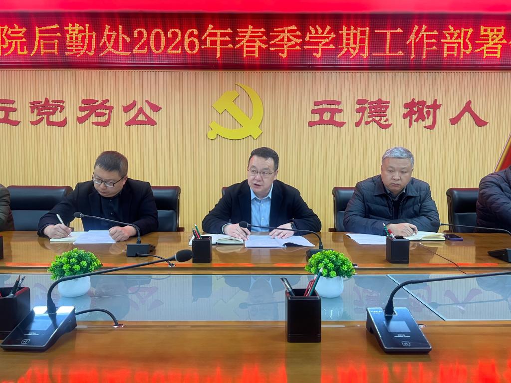 2月24日下午,汉中职院后勤处召开2026年春季开学部署会议,全面总结寒假后勤工作成效,明确近期开学保障任务及2026年度后勤工作重点,确保学院正式开学后各项后勤保障工作平稳有序、高效运转。后勤处处长王启林主持会议,后勤处全体工作人员,以及学院各餐饮公司、超市、快递超市、物业公司、洗浴和水源热泵空调等合作单位负责人参会。