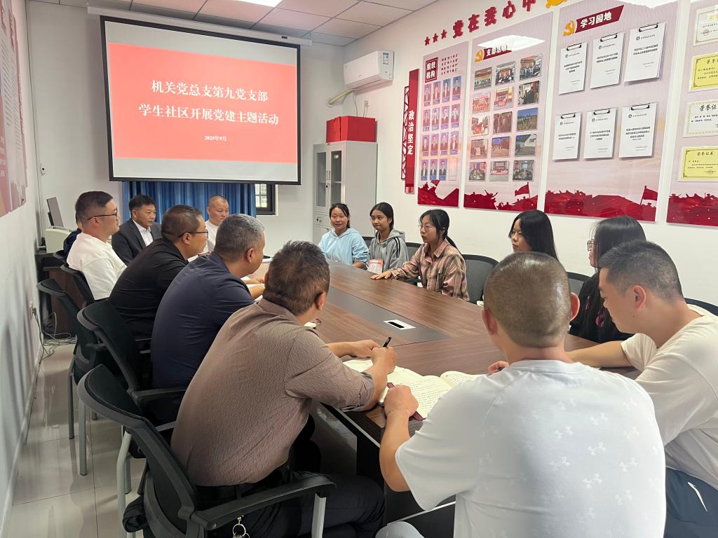 2025年9月19日,机关党总支第九党支部以“走进学生宿舍、帮助解决困难”为主题在“一站式”学生社区开展学生社区党建主题活动。全体党员、护理学院学生代表、师范学院代表参加交流座谈会。会议由党支部书记刘俊延主持。